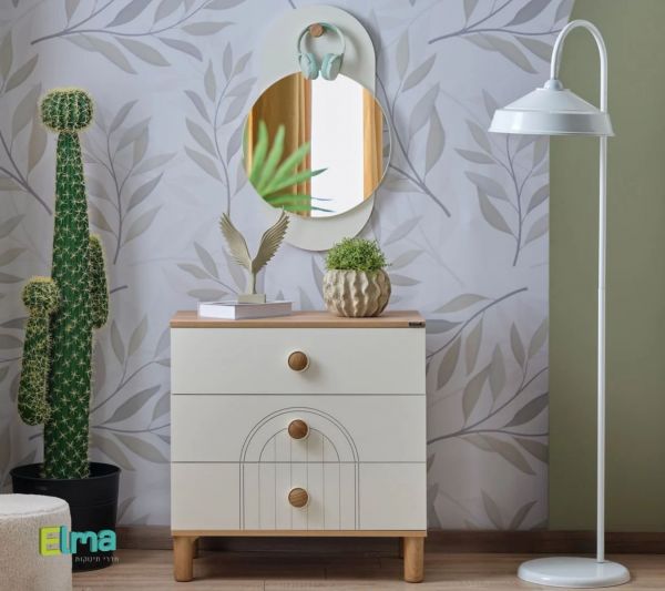 تم تصنيع المنتج من لوح خشب مضغوط مغطى بطبقة ميلامين عالية الجودة، يتميز بمقاومة ممتازة للماء والرطوبة، كما أنه خالٍ تمامًا من المواد المسرطنة ومطابق لمعايير صحة الإنسان.