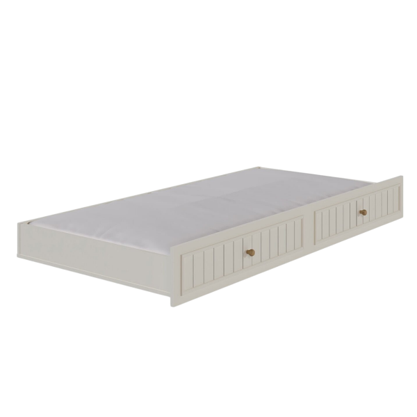 מיטת מגירה נמוכה ופרקטית, אידיאלית לשימוש מתחת למיטה או למיטת קומותיים – פתרון מושלם למיטה נוספת מבלי לתפוס מקום מיותר.